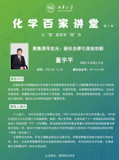 报告题目:聚集诱导发光:新概念牵引原始创新
