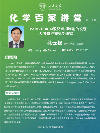 报告题目:PARP-1/BRD4 双靶点抑制剂的发现及其抗肿瘤机制研究