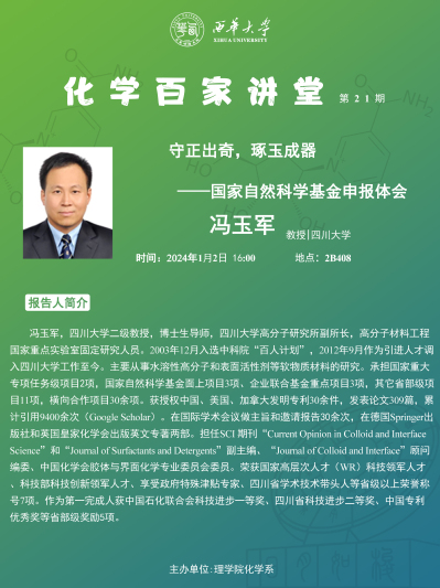 报告题目:守正出奇,琢玉成器——国家自然科学基金申报体会
