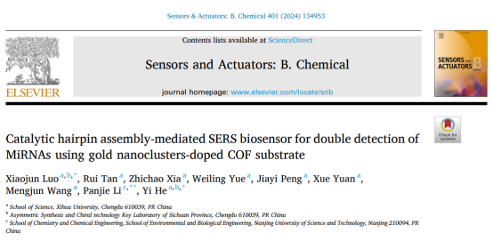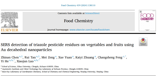 近期,理学院表面增强拉曼光谱团队(何毅、罗晓俊、吴彩骏等)在分析化学领域Top期刊Sensors and Actuators B: Chemical (SCI一区,IF:8.4),食品科技领域Top期刊Food Chemistry (SCI一区,IF:8.8)和材料科学领域Top期刊ACS Applied Materials & Interfaces (SCI二区,IF:9.5)上发表研究论文4篇。何毅和罗晓俊老师为论文通讯作者,西华大学硕士研究生谭锐、张润滋,四川大学研究生陈治男做了大量科研工作,同时该成果还得到了南京大学和四川省不对称合成与手性技术省重点实验室的大力支持和协助。