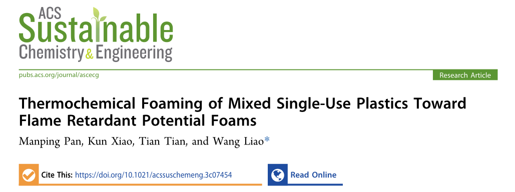 近期,理学院可持续发展和可循环利用多孔固体研究团队在化学综合性期刊ACS Sustainable Chemistry & Engineering (JCR 1区TOP,IF: 8.4)上发表题为“Thermochemical Foaming of Mixed Single-Use Plastics Toward Flame Retardant Potential Foams”的研究论文,论文的第一作者为理学院材料与化工专业硕士研究生潘曼坪,生物与医药专业研究生肖堃、田恬参与合作研究,通讯作者为西华大学理学院廖望副教授。