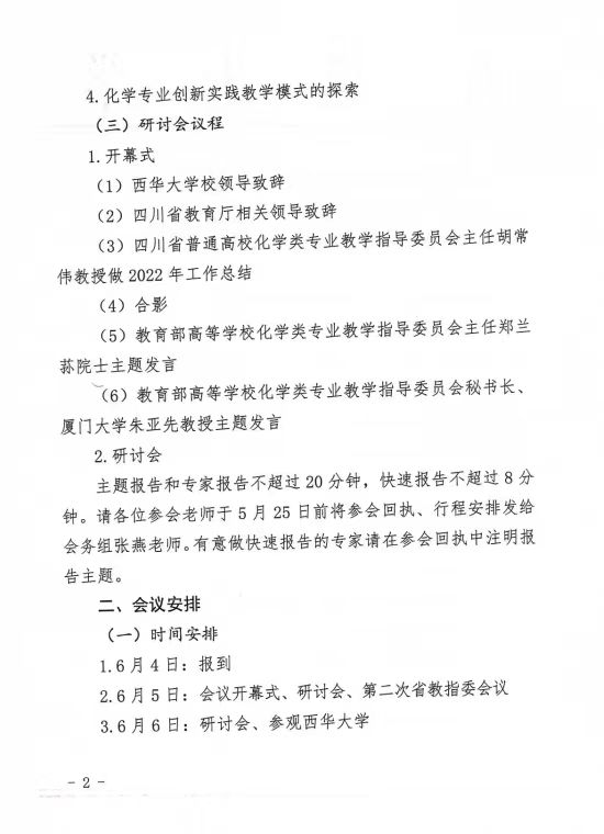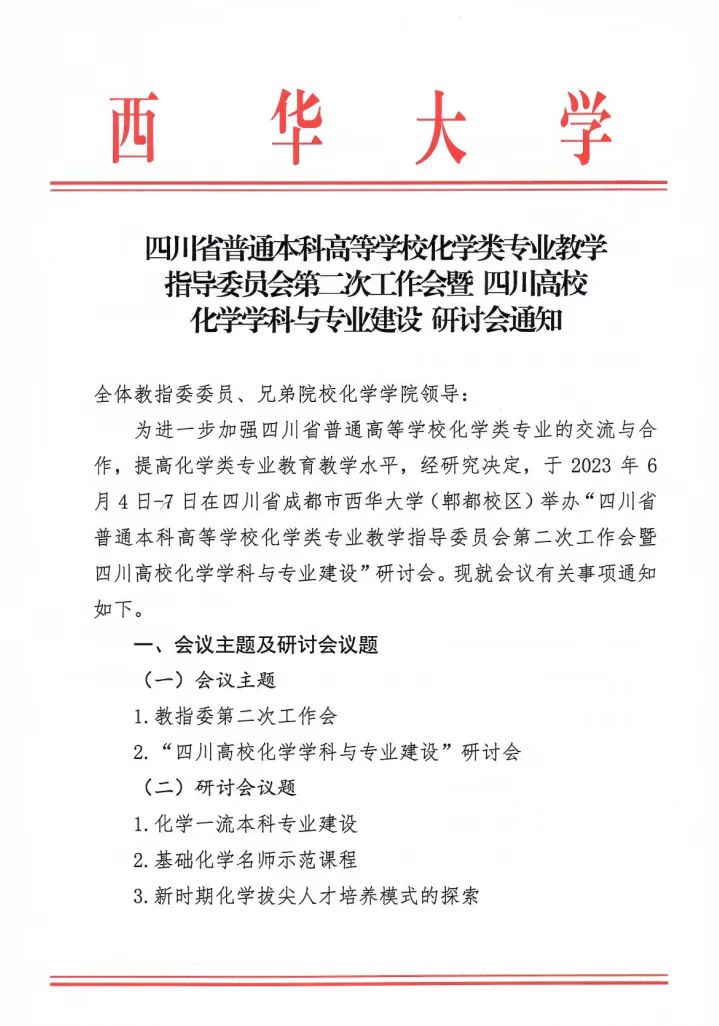 四川省普通本科高等学校化学类专业教学指导委员会第二次工作会暨四川高校化学学科与专业建设研讨会通知