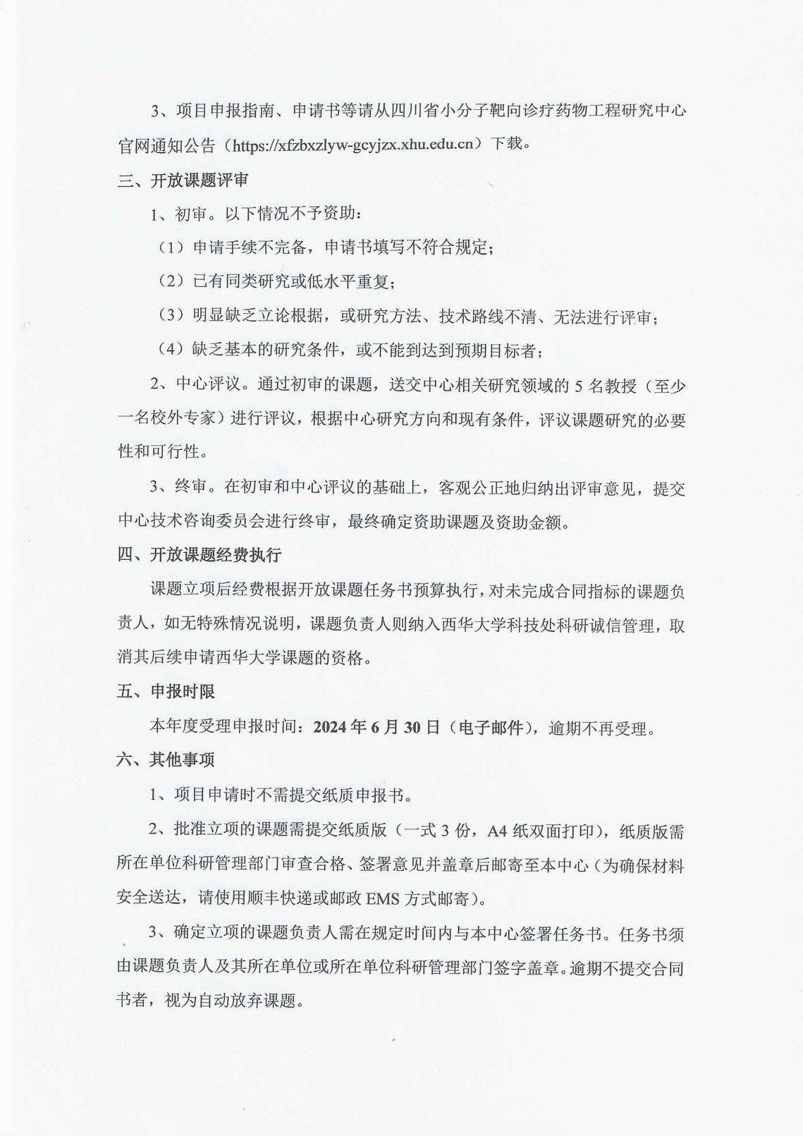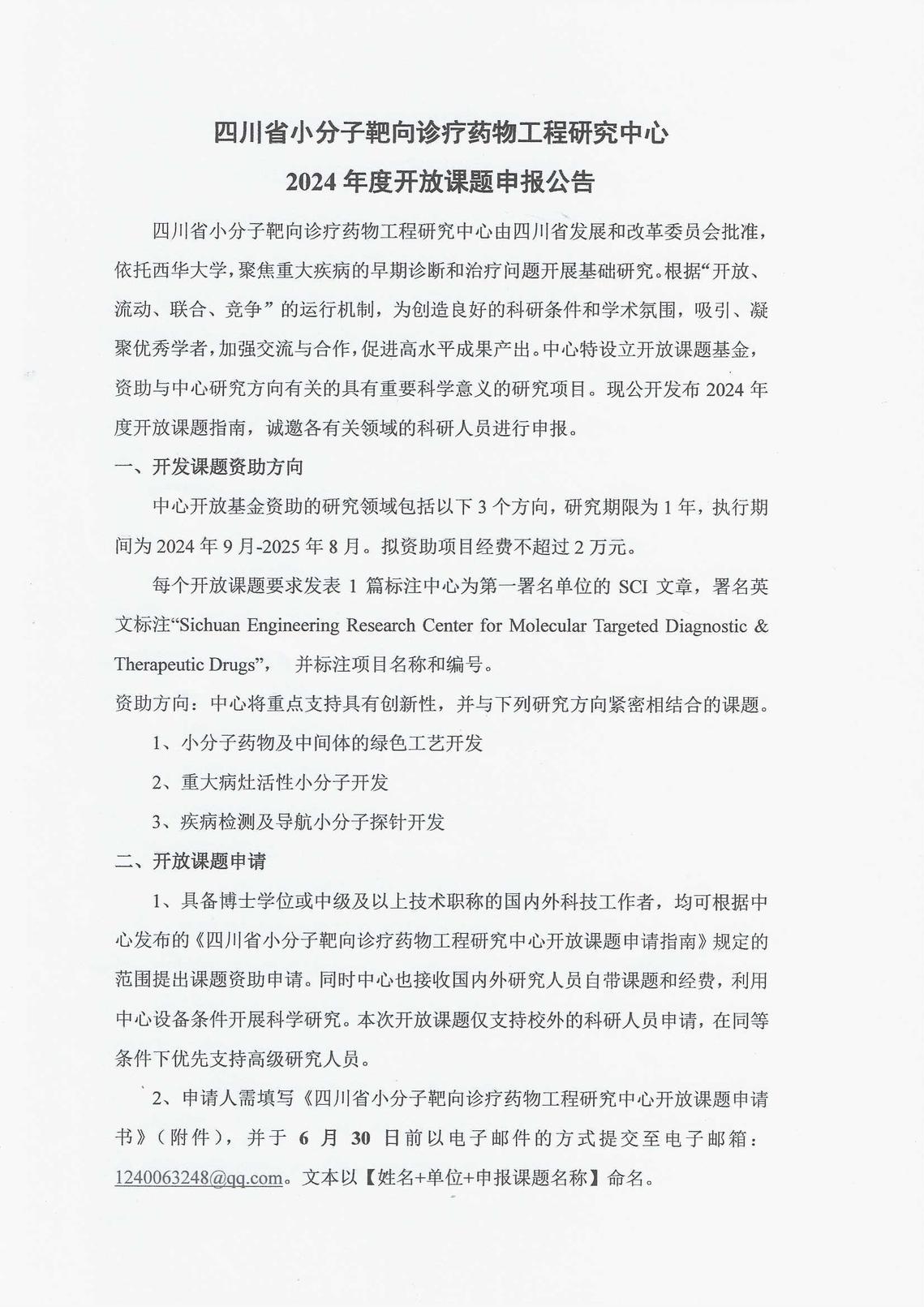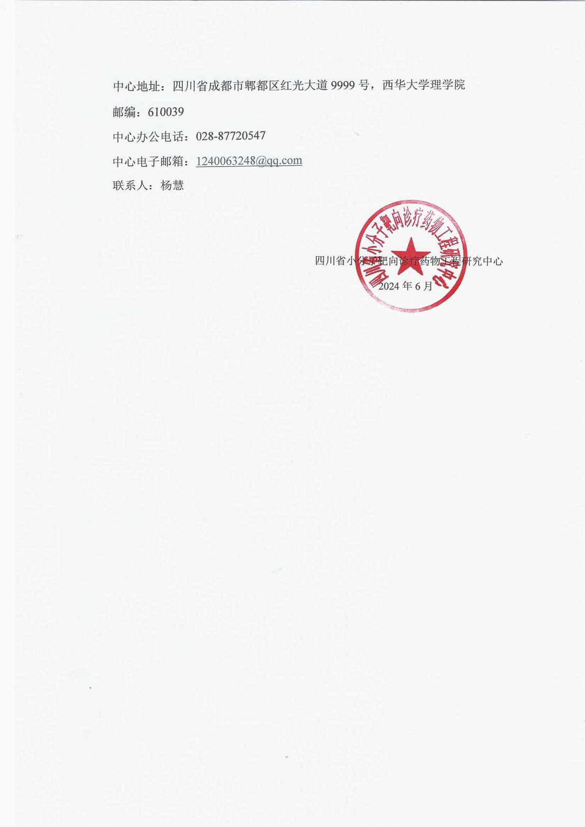 四川省小分子靶向诊疗药物工程研究中心2024年度开放课题申报