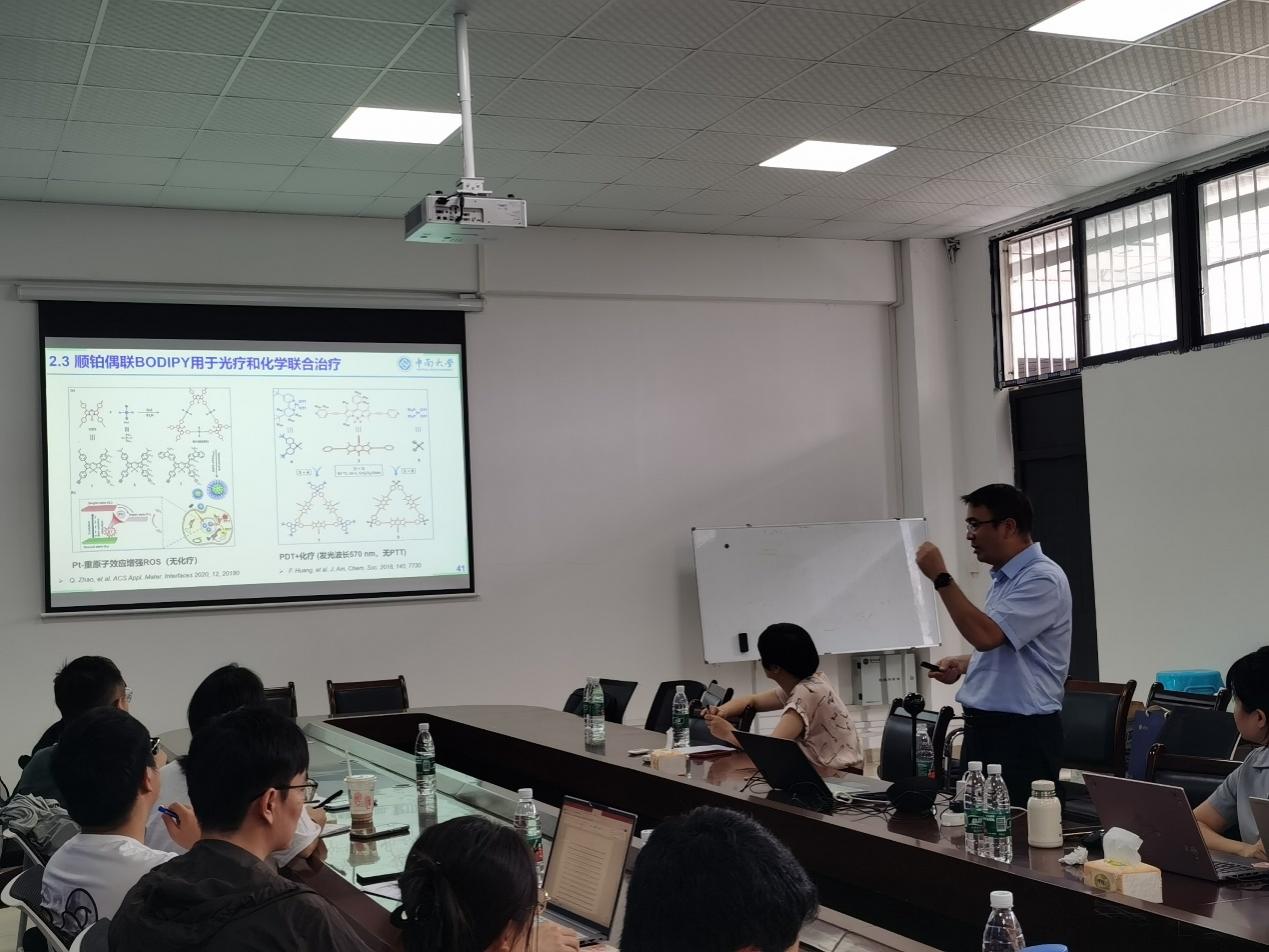 8月5日上午,中南大学化学化工学院教授、博士生导师蓝敏焕应理学院邀请,在2B-408会议室作题为有机光/声敏剂的设计合成及其抗肿瘤应用的学术讲座。此次讲座通过线上与线下结合的方式进行,吸引学院众多师生参加。