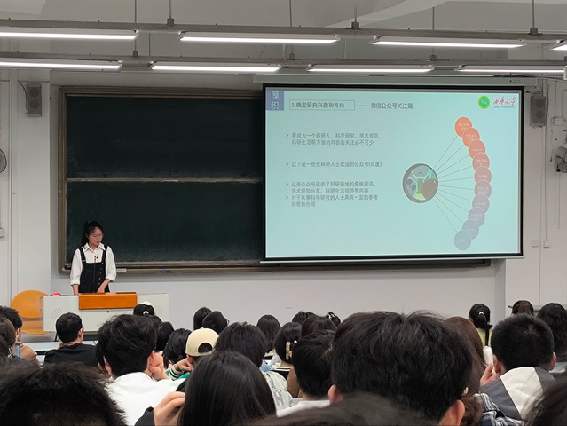 4月11日19:00,理学院在6B-107举办了青春就业大讲堂活动,参与人员主要为2023级本科生。本次活动由学科部承办,主讲人为2021级化学专业本科生谢雅琳,主要就科研与论文写作、期刊发表做相关介绍。