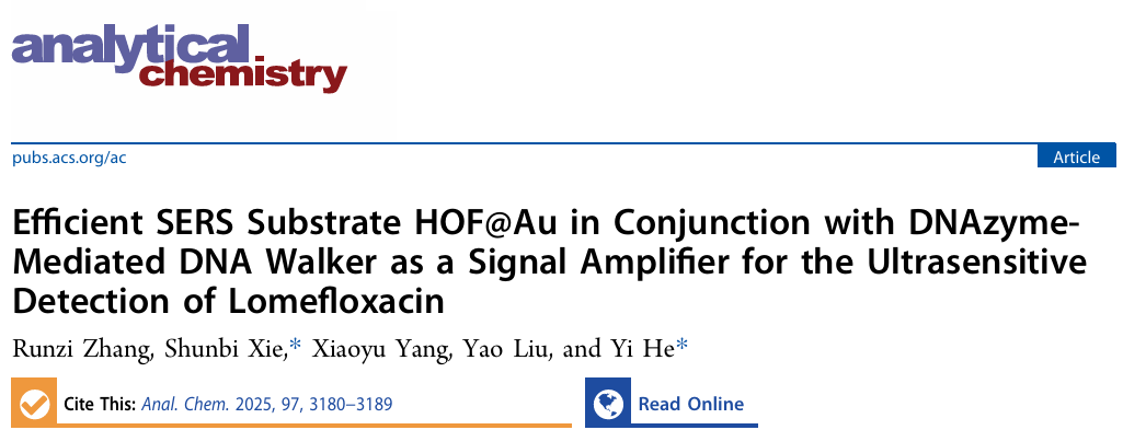 近日,理学院何毅博士在Analytical Chemistry期刊(中科院一区,IF=6.7)发表题为“Efficient SERS Substrate HOF@Au in Conjunction with DNAzyme-Mediated DNA Walker as a Signal Amplifier for the Ultrasensitive Detection of Lomefloxacin”的研究性论文。理学院2023级化学专业研究生张润滋为第一作者,何毅博士为该论文的通讯作者,西华大学为第一通讯单位。