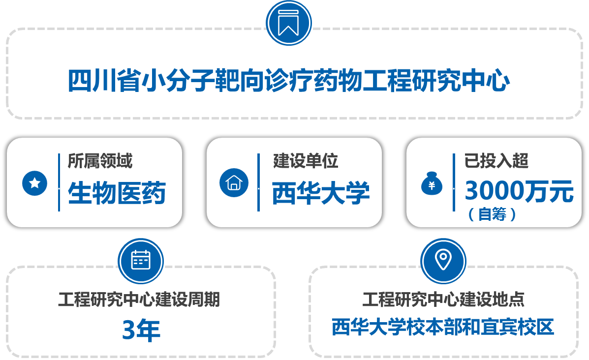 四川省小分子靶向诊疗药物工程研究中心( 以下简称“研究中心”)由西华大学联合相关高校、科研院所和产业链上下游企业组建而成,于202212月获四川省发展和改革委员会批准建立。研究中心围绕重大疾病的早期诊断和治疗问题,拟搭建疾病检测及导航小分子探针研究室、重大病灶光疗小分子药物研究室、新型小分子靶向药物研究室3个研究平台,旨在开发快速疾病检测试剂、导航小分子诊断探针、具有光疗效果的小分子药物和创新靶向小分子药物,着力研制一批具有自主知识产权、技术领先、可转化应用的生物医药领域科研成果。研究中心现有相关领域专职科研人员49人,其中教授、研究员17人,副教授13人,具有博士学位教师44人。是一支以长江学者为代表,天府学者特聘专家、天府万人计划科技菁英、四川省学术与技术带头人后备人才、四川省杰出青年基金获得者等人才为中坚力量的研发队伍。秉承西华大学“开放办学、资源共享、服务社会”的宗旨,研究中心将通过技术服务、合作开发、技术转让等方式加强和企业的合作联系,通过学术会议加大国内外、东西部之间的合作交流,有效搭建学术界、高校科研与产业之间的桥梁,形成持续不断的产业技术供给,加速科研成果向现实生产力的转化,为推动四川省乃至全国生物医药的创新发展贡献力量。
