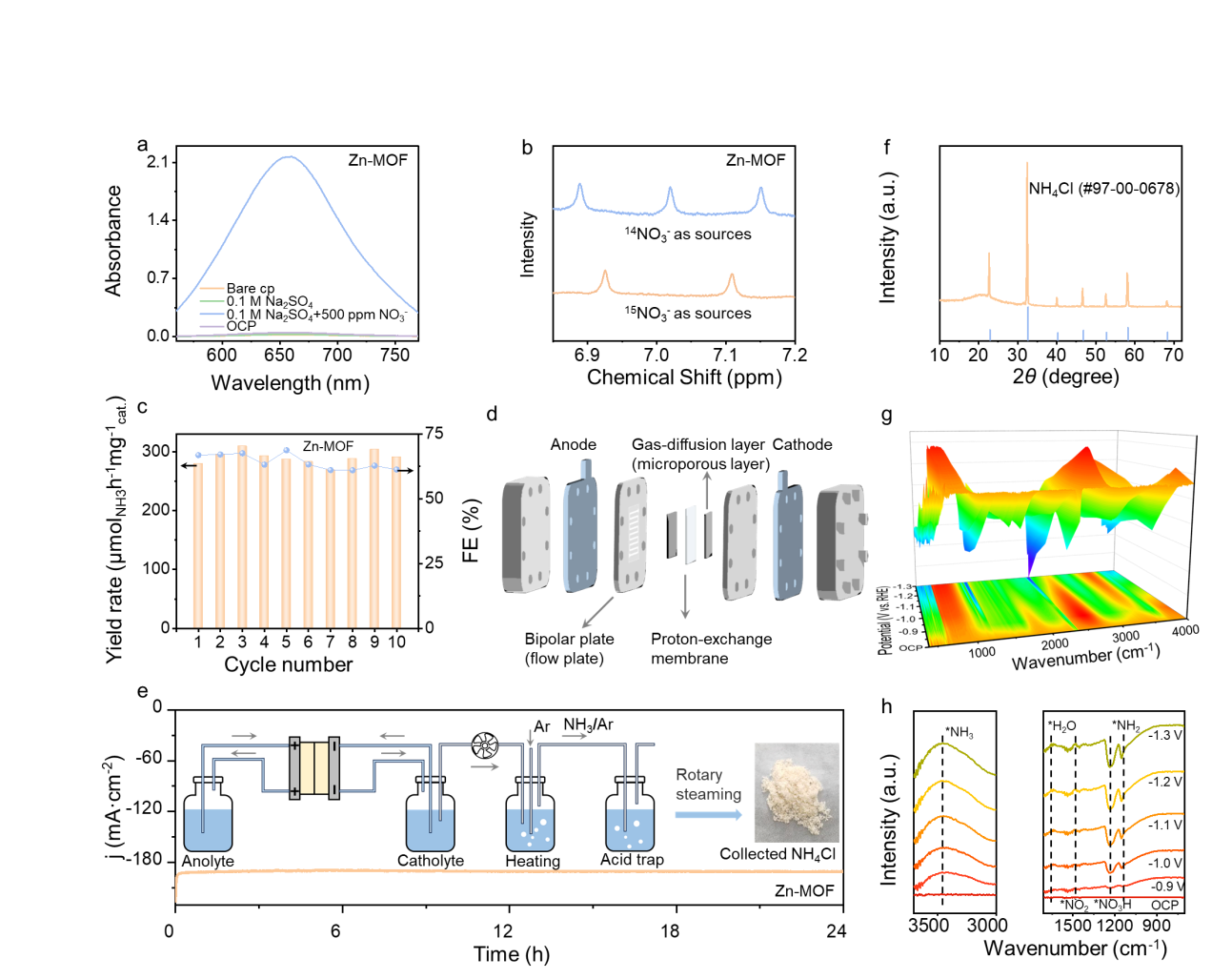 Zn-MOF材料的电化学NO₃RR稳定性测试及原位红外表征